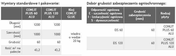 - tosowane są do wykonywania zabezpieczeń ogniochronnych przewodów wentylacyjnych, klimatyzacyjnych i oddymiających. Przewody zabezpieczone płyta CONLIT PLUS 60 ALU spełniają wymagania wszystkich klas odporności ogniowej do EIS 60, natomiast kanały zabezpieczone płytą CONLIT PLUS 120 ALU spełniają wymagania wszystkich klas odporności ogniowej do EIS 120.
