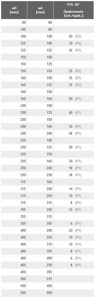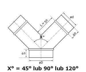 - ramiona trójnika w rozstawach pod kątami: 45° (IVE 22,5°), 90° (IVE 45°), 120° (IVE 60°),