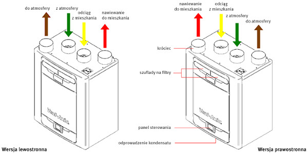 • rządzenie zaprojektowano tak, aby zapewnić całodobową wentylację wyciągową stęchłego, wilgotnego powietrza z łazienek, toalet, pomieszczeń gospodarczych oraz kuchni. Przy wyciągu stęchłego powietrza wymiennik ciepła w urządzeniu przesyła do 94% ciepła do nawiewu skierowanego do sypialni i salonu. Zapewnia to odzysk znaczących ilości energii, a jednocześnie niższe koszty ogrzewania i bardziej komfortowe warunki.